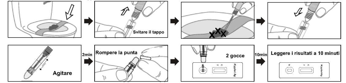 Due linee (controllo + test): positivo → possibile infezione da H. pylori.